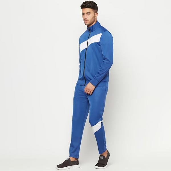 Blue and white colourblocked stretchable tracksuit